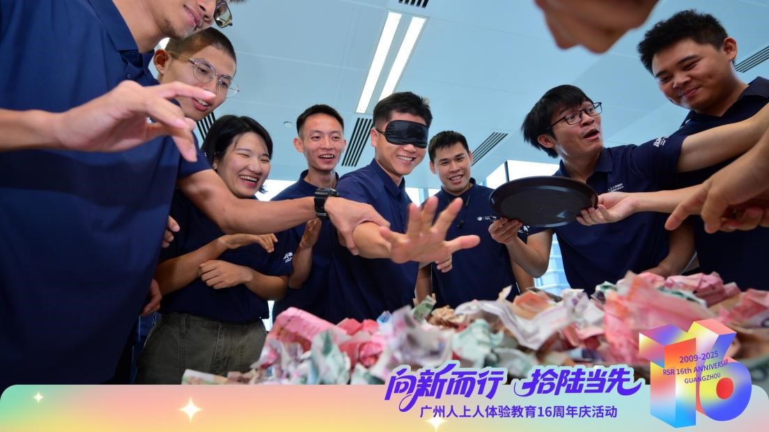 作為獎勵環(huán)節(jié)的【蒙眼撈錢】更是驚喜連連。根據(jù)排名,隊員們戴著眼罩在“錢山”中徒手撈幣,每一次出手都伴隨著陣陣喝彩,撈出的不僅是“財富”,更是屬于團隊的榮耀與歡樂。