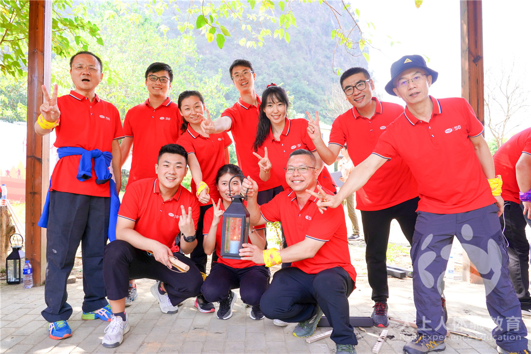活動開始前,我們用人體進行擺拍,擺出50的logo慶祝公司生日,在出發(fā)儀式上踩燈布、打禮炮等等儀式感十足。