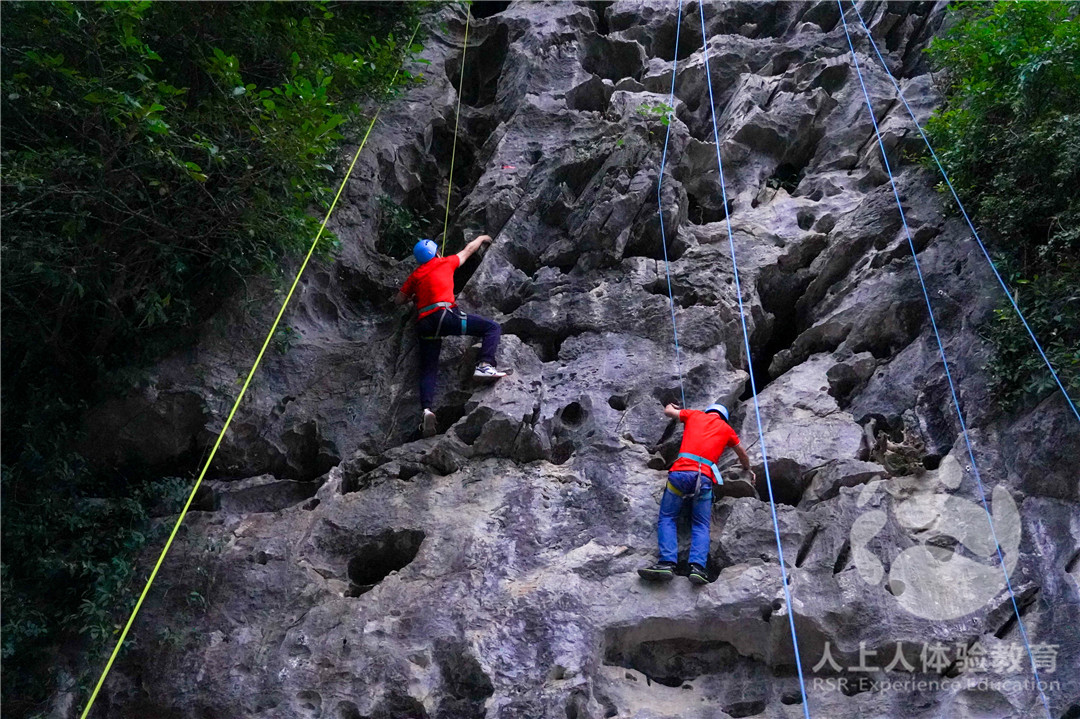 我們特意將攀巖的地方安排在徒步的終點,然后每支隊伍派出三位代表進行攀巖。在攀巖的過程中,體驗向上攀登的艱難,克服困難的勇氣以及不斷超越的決心。走過五十周年,我們一起勇攀高峰,踏上新征程。