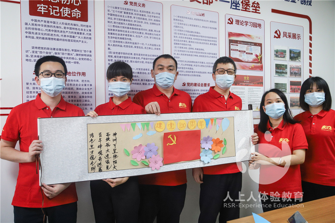 創(chuàng)意大作戰(zhàn)——利用辦公室現(xiàn)有道具,大膽創(chuàng)新,通力合作,以“繪畫(huà)+剪紙+賦詩(shī)”制作一幅賀圖,獻(xiàn)禮中國(guó)共產(chǎn)黨百年華誕。