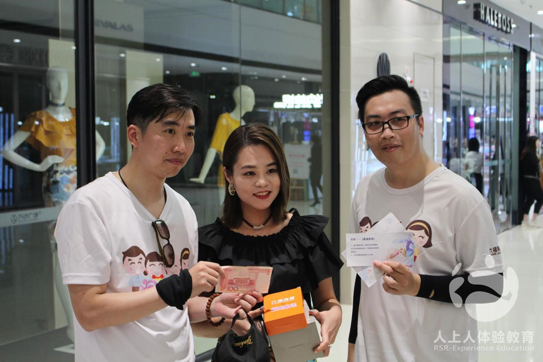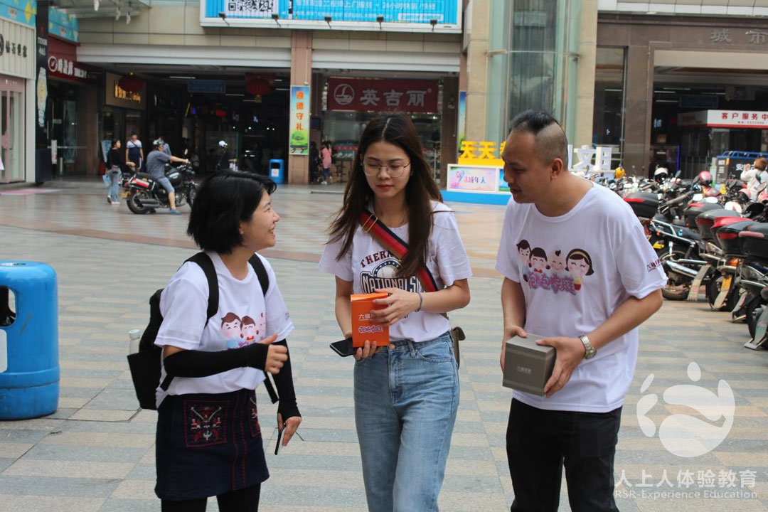 打卡的同時,伙伴們還要說服路人,將兩件禮品以盡量高的價格賣出,賺取更多的錢。