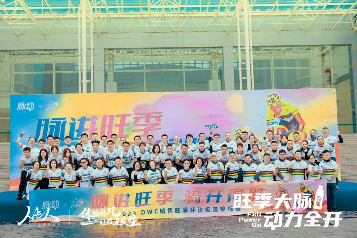 旺季之戰(zhàn)就是士氣之戰(zhàn)、意志之戰(zhàn)、氛圍之戰(zhàn)。為進(jìn)一步激發(fā)士氣,鼓舞斗志,廣州人上人體驗(yàn)教育為達(dá)能脈動(dòng)舉行了《脈進(jìn)旺季 騎開得勝》為主題的環(huán)法極速錦標(biāo)賽拓展活動(dòng)。