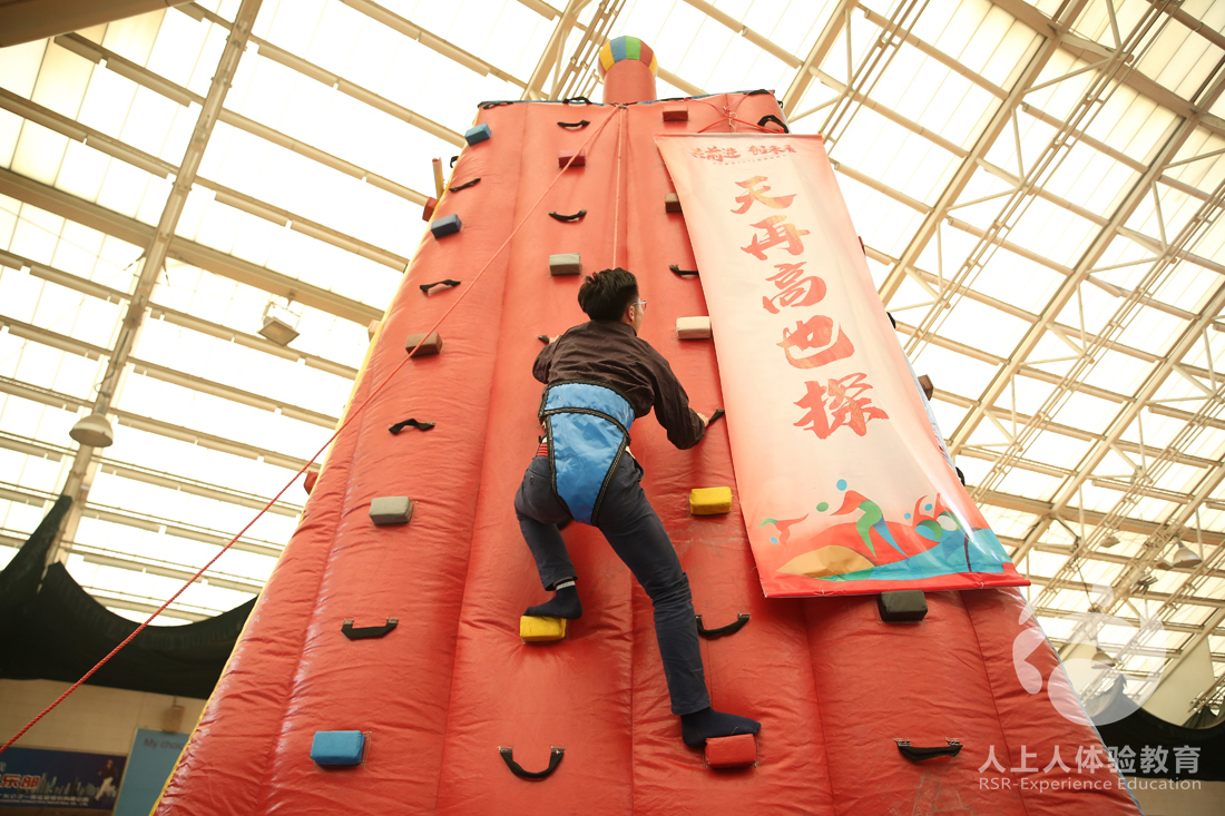 第三個挑戰(zhàn)項目是快樂大沖關+勇攀高峰,這個一個超級大型的充氣項目,由兩種大型充氣道具組成,隊員通關種種障礙,到達勇攀高峰,爬上頂端再與下一個隊友交接,最后一個隊員攀上高峰后會打開一條豎幅,“天再高也探,山再險勇攀,水再深敢潛,路再遠亦達”,伙伴們,加油,看好你們哦!