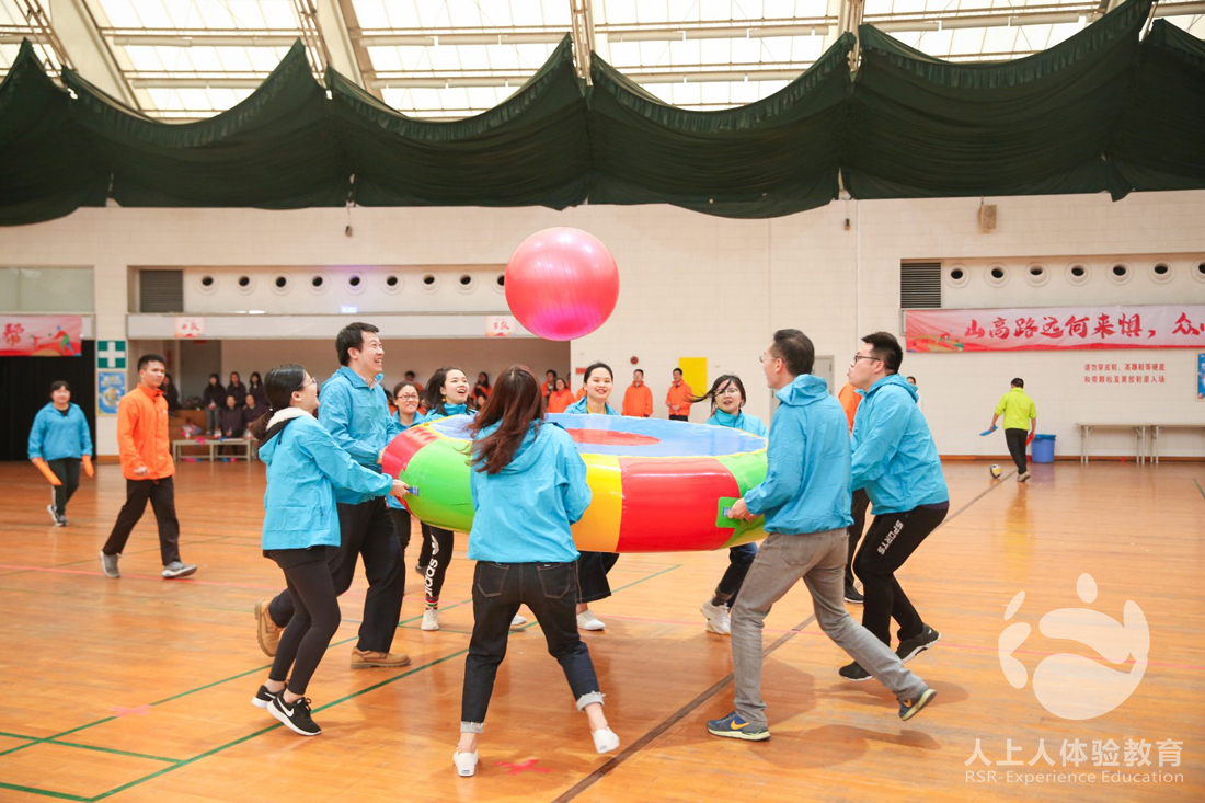 第三個挑戰(zhàn)項目是眾星捧月,小組之間相互配合,共同把球顛到終點,同時這個項目也為下一個百人戰(zhàn)鼓項目做了一個鋪墊,先讓隊員找點感覺,練練手。