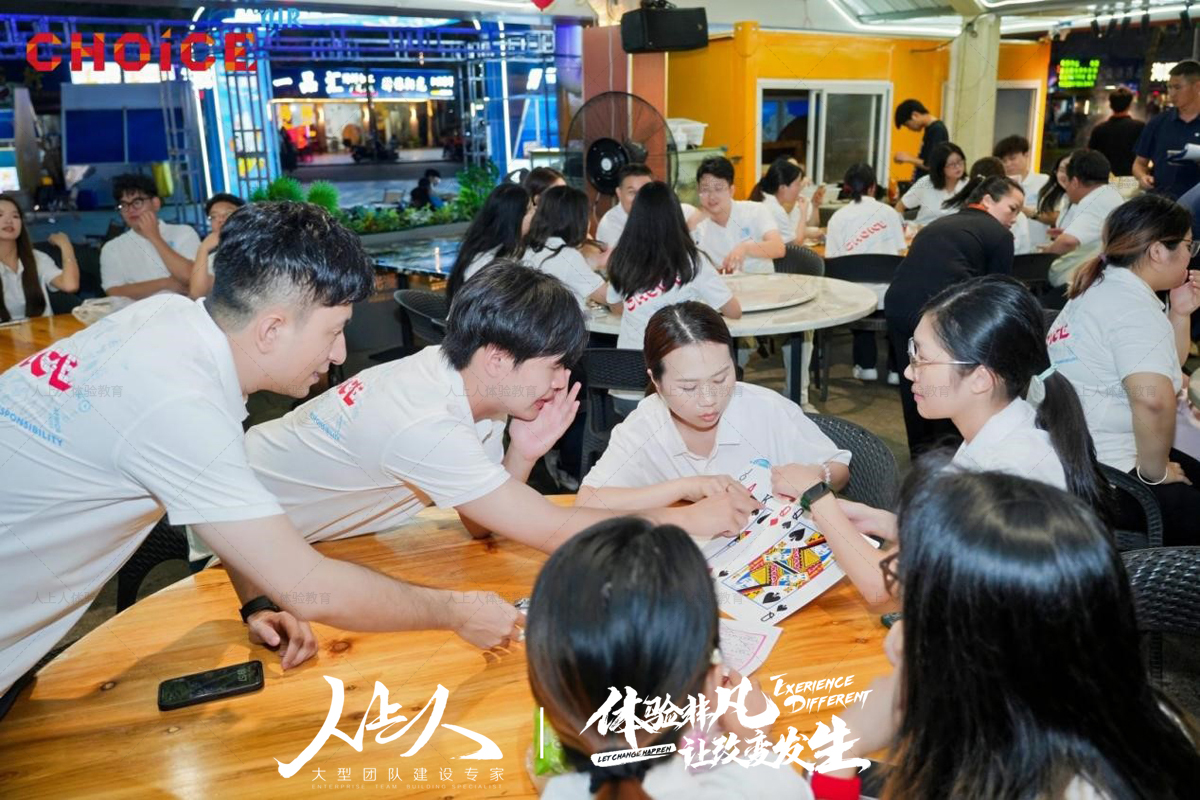 “巨人捕手” 項(xiàng)目結(jié)束后,全體員工搭乘游船前往桂山島。抵達(dá)海島并享用特色晚餐后,晚間的 “德州撲克” 項(xiàng)目如期開展。不同于傳統(tǒng)娛樂模式,此次德州撲克以團(tuán)隊(duì)為單位進(jìn)行,考驗(yàn)隊(duì)員的策略思考與團(tuán)隊(duì)決策能力。各隊(duì)伍在牌局中謹(jǐn)慎分析、相互商討,在輕松的氛圍中進(jìn)一步提升了團(tuán)隊(duì)協(xié)作意識(shí)。