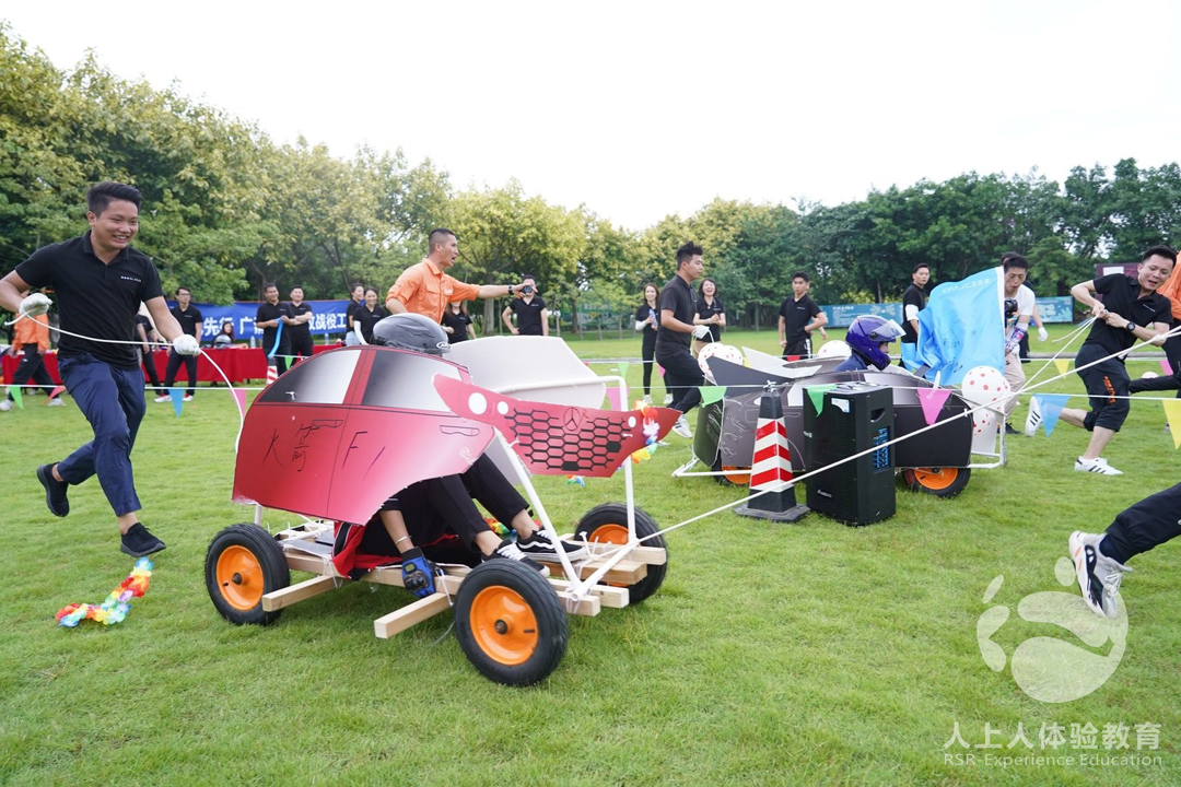 通過一系列的闖關(guān)任務(wù),層層挑戰(zhàn),讓隊(duì)內(nèi)成員的配合度得到提升,為下午的團(tuán)隊(duì)合作項(xiàng)目——F1賽車打好基礎(chǔ)。