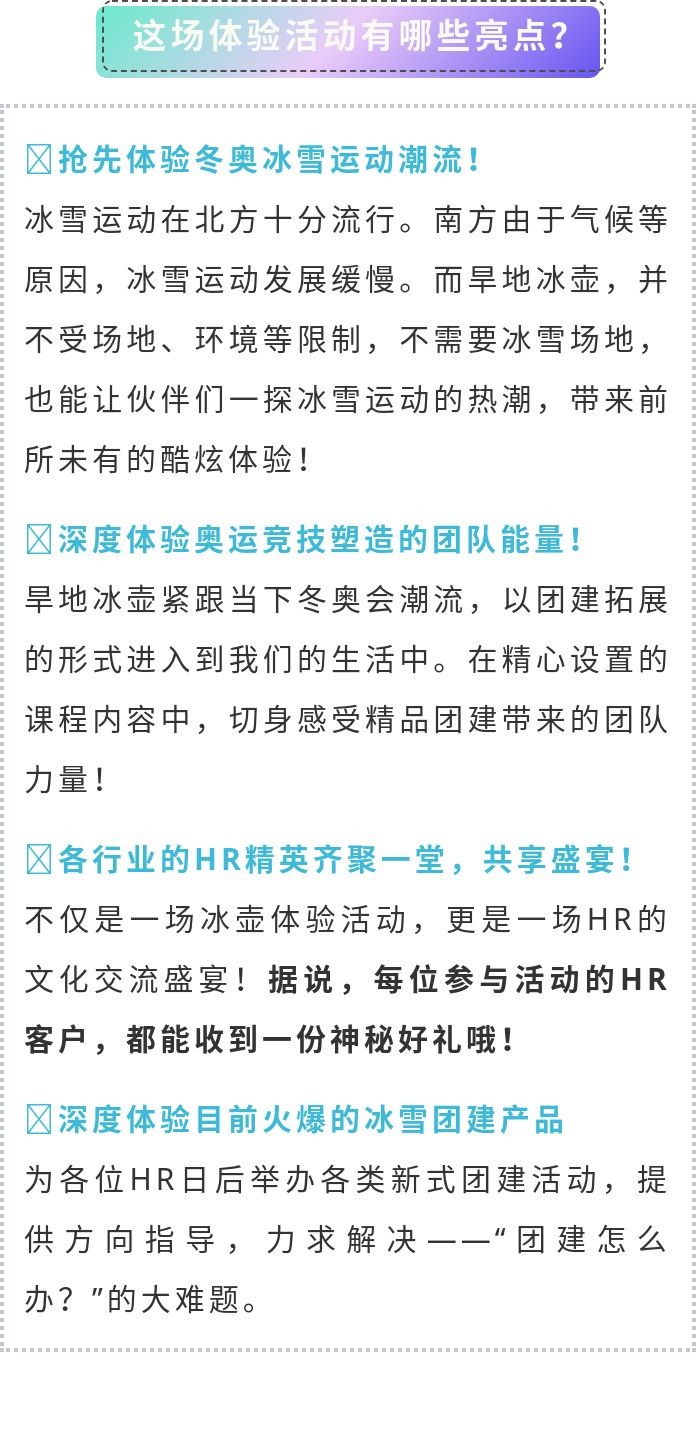 現(xiàn)邀請(qǐng)100位企業(yè)HR,免費(fèi)參與《旱地冰壺》品牌課程體驗(yàn)活動(dòng),讓大家不用上冰雪場(chǎng)地,也能體驗(yàn)一把冰雪運(yùn)動(dòng)的魅力!