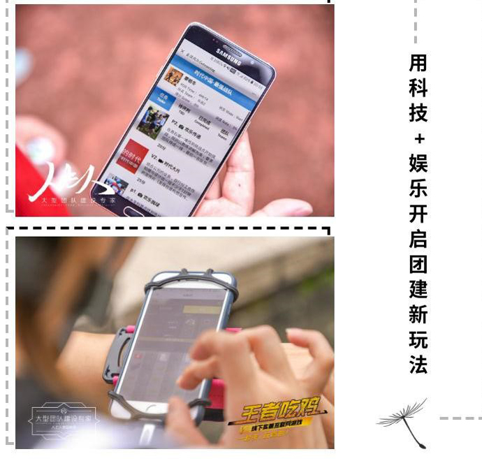 趣團建:《最強戰(zhàn)隊》+《王者吃雞》,所有的闖關項目、團隊比拼,需要在智能手機的配合下使用,十分酷炫有木有!